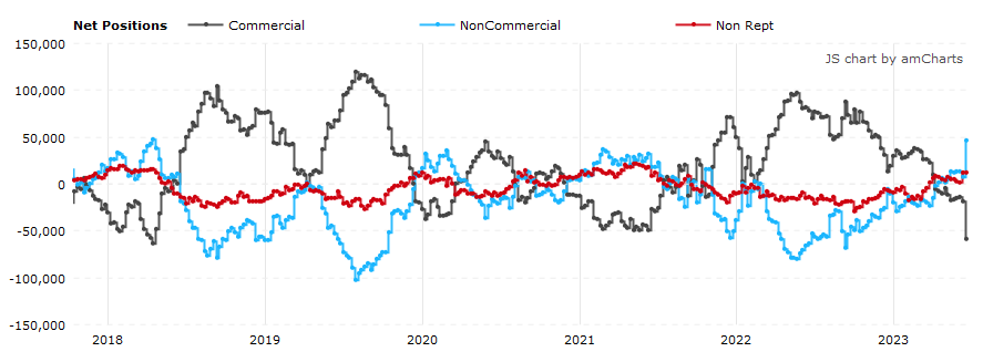 Согласно отчетам COT (Commitments of Traders), предоставляемым Комиссией по торговле товарными фьючерсами (CFTC) - за неделю, закончившуюся в прошлый вторник: