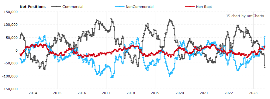 Согласно отчетам COT (Commitments of Traders), предоставляемым Комиссией по торговле товарными фьючерсами (CFTC) - за неделю, закончившуюся в прошлый вторник: