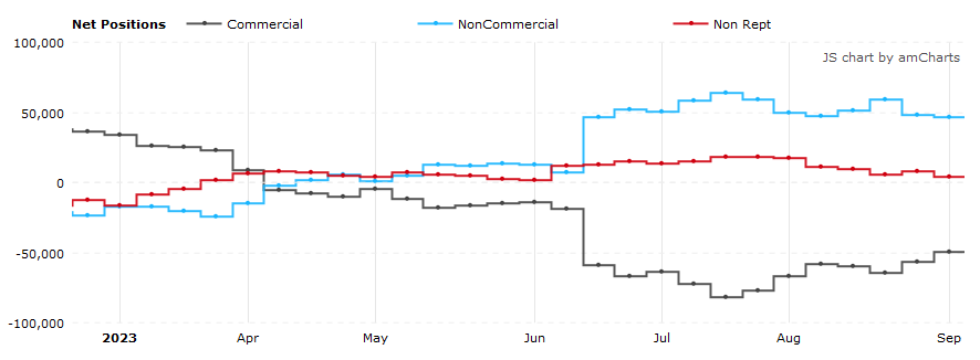 Согласно отчетам COT (Commitments of Traders), предоставляемым Комиссией по торговле товарными фьючерсами (CFTC) - за неделю, закончившуюся в прошлый вторник: