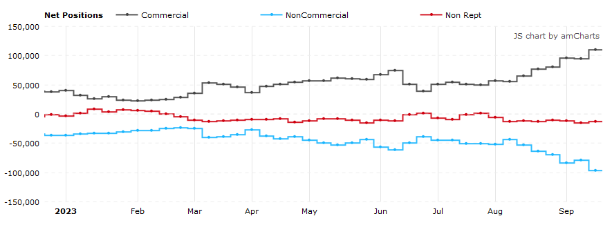 Согласно отчетам COT (Commitments of Traders), предоставляемым Комиссией по торговле товарными фьючерсами (CFTC) - за неделю, закончившуюся в прошлый вторник: