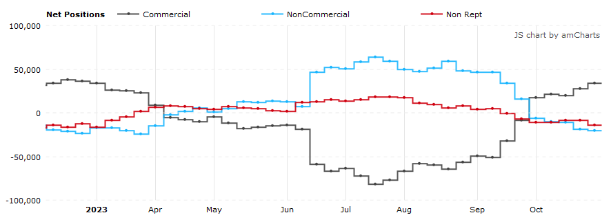 Согласно отчетам COT (Commitments of Traders), предоставляемым Комиссией по торговле товарными фьючерсами (CFTC) - за неделю, закончившуюся в прошлый вторник: