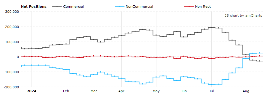 Согласно отчетам COT (Commitments of Traders), предоставляемым Комиссией по торговле товарными фьючерсами (CFTC) - за неделю, закончившуюся в прошлый вторник:
