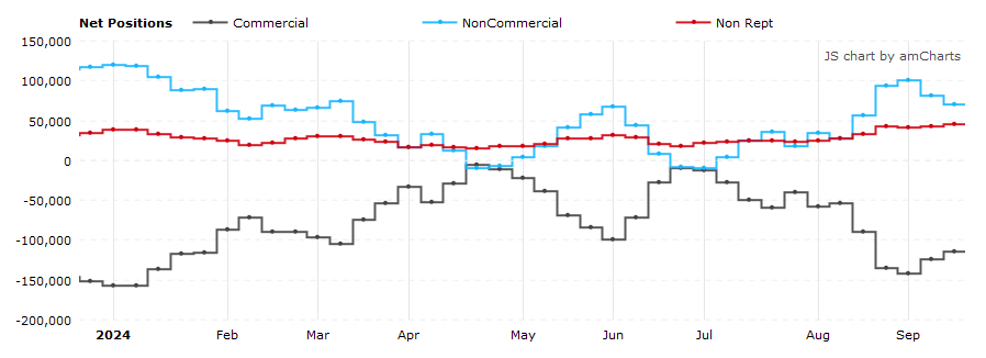 Согласно отчетам COT (Commitments of Traders), предоставляемым Комиссией по торговле товарными фьючерсами (CFTC) - за неделю, закончившуюся в прошлый вторник:
