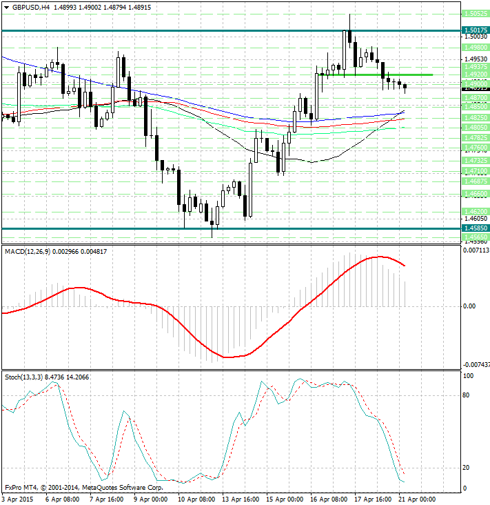 Курс валюты по-прежнему расположен существенно выше скользящих средних с периодами 34, 144, 89 и 55, которые являются рядом уровней поддержки 1.4845, 1.48375, 1.4825 и 1.4805.