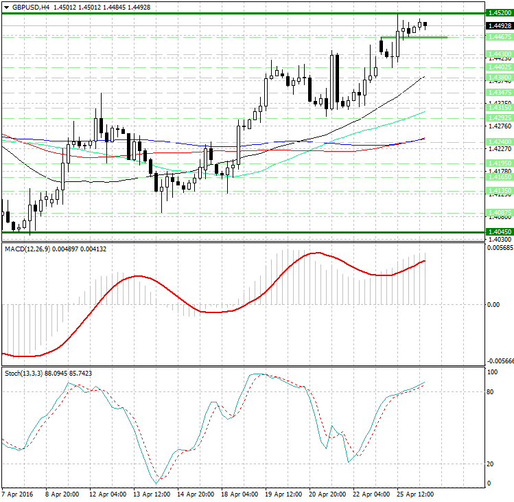 Начнем с того, что наш вчерашний форекс прогноз подтвердился - рост британского фунта (GBP) возобновился и усилился после пробоя уровня 1.44675, и наша первая цель 1.4525 была практически достигнута в ходе европейской сессии...