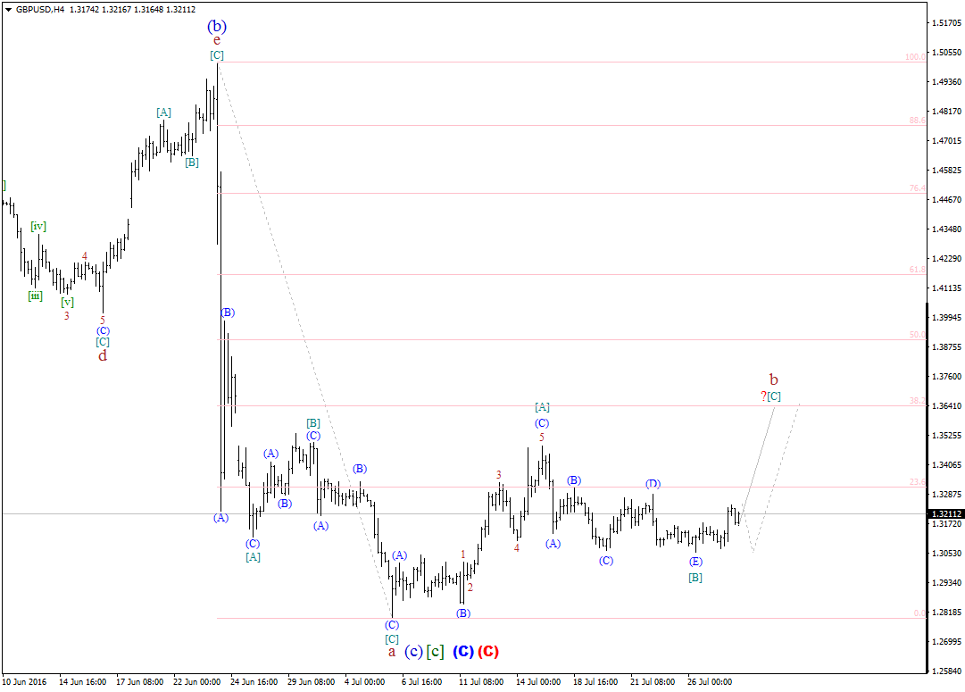 Таким образом, складывающаяся волновая ситуация позволяет рассматривать достигнутый во вторник минимум (1.3055), как завершение волны [В], в составе принимающей более сложную и протяженную во времени форму, волны b, в (с), в [с], в (С), в (С). Если это так, то обозначившееся вчера восходящее движение является, скорее всего, началом будущей волны [С], в b, в (с), в [с], в (С), в (С), расчетные цели которой могут быть расположены в диапазоне от отметки 1.3650 и далее к уровню 1,3900.
