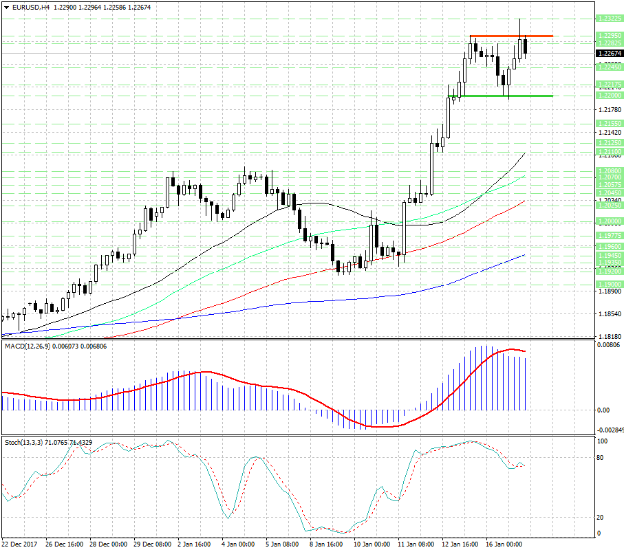 - на уровне 1.2295 присутствует значительное сопротивление для евро (EUR),