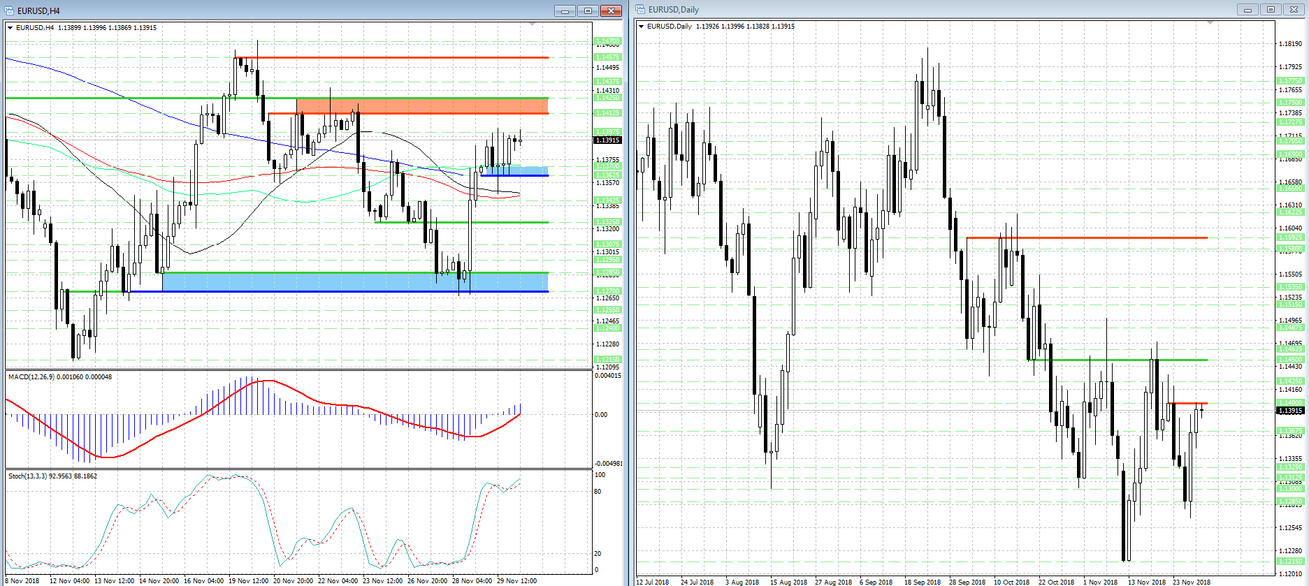 Курс валюты расположен выше скользящих средних с периодами 55, 144, 34 и 89, которые являются рядом уровней поддержки 1.1370, 1.13625 и 1.1350/45.