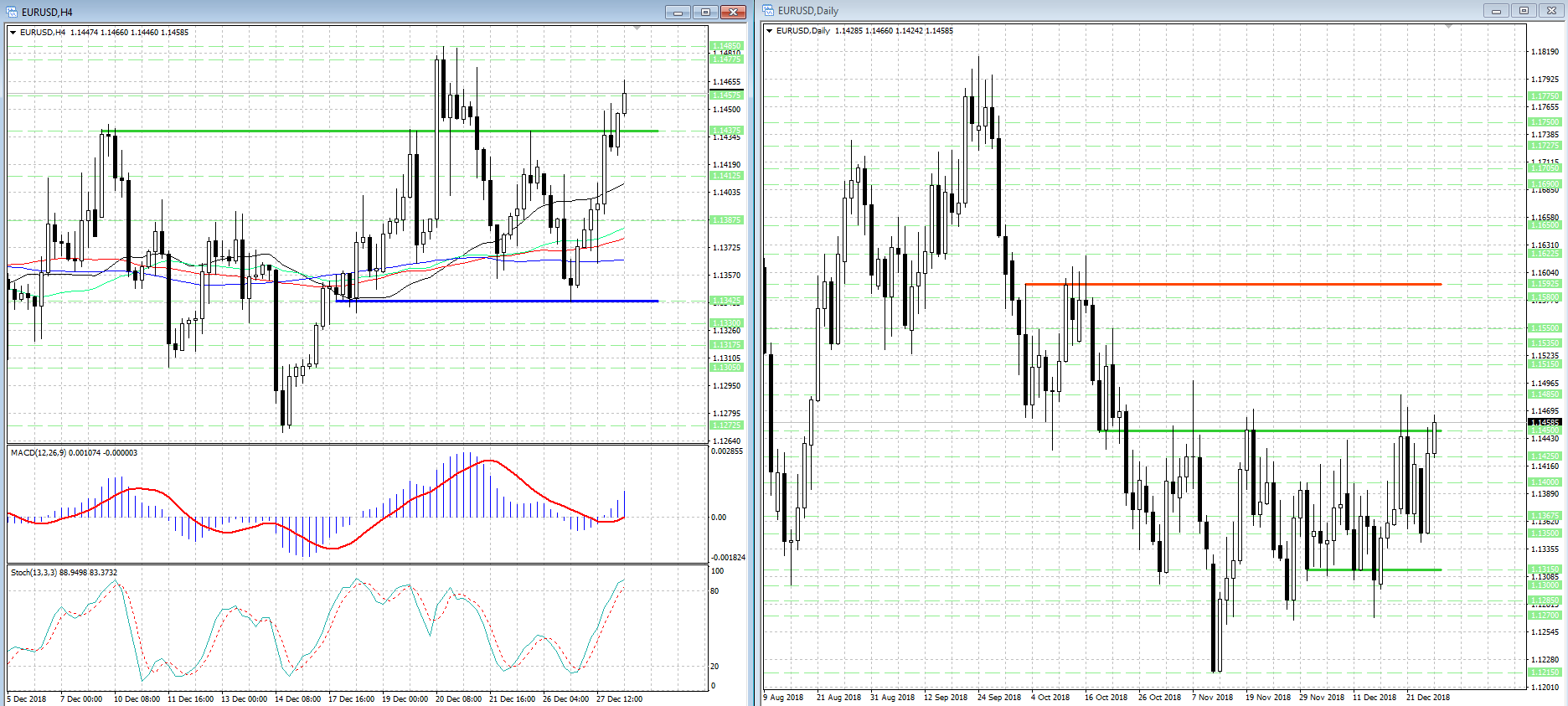 - сегодня утром котировки вплотную приближались к нашей второй цели - 1.14775...