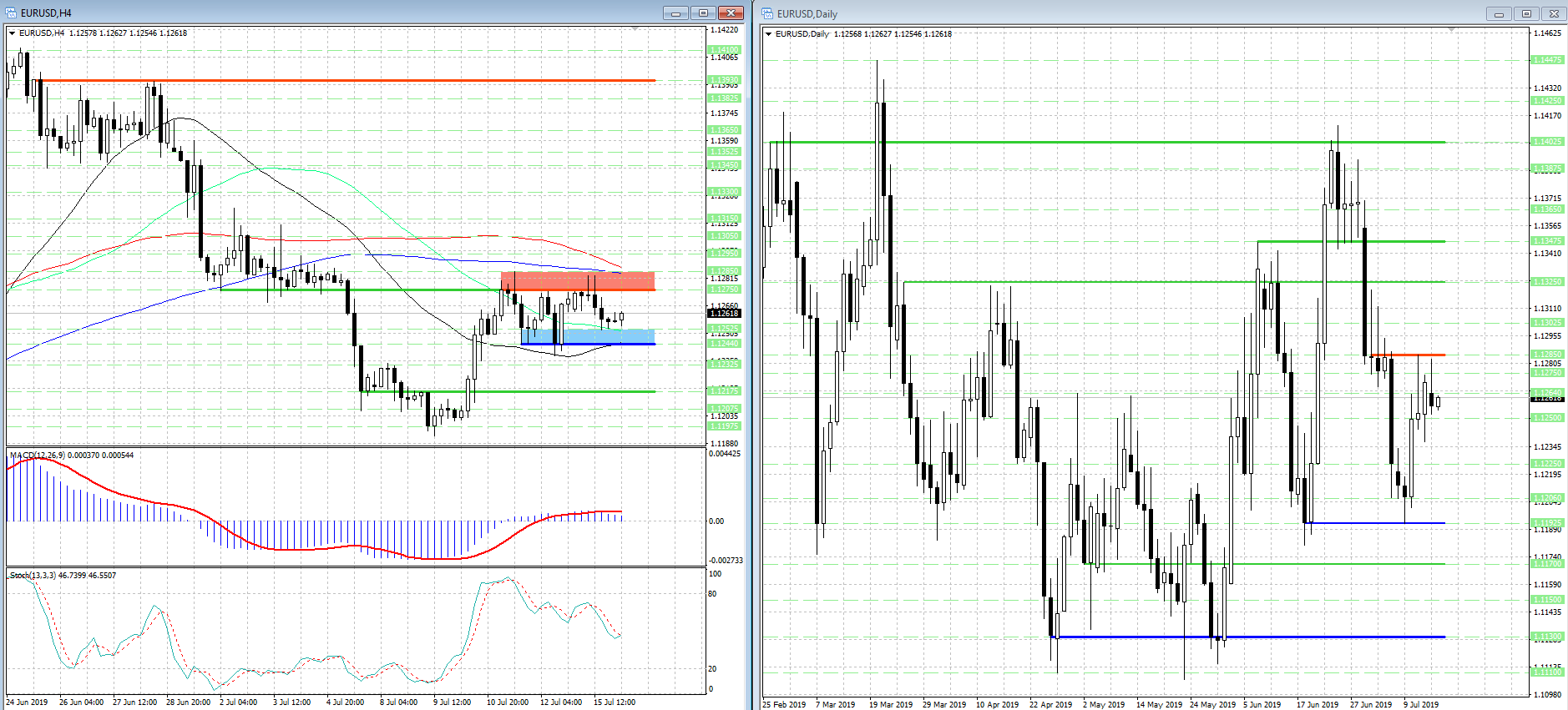 - в области 1.1275 - 1.1285 присутствует заметное сопротивление для евро (EUR),