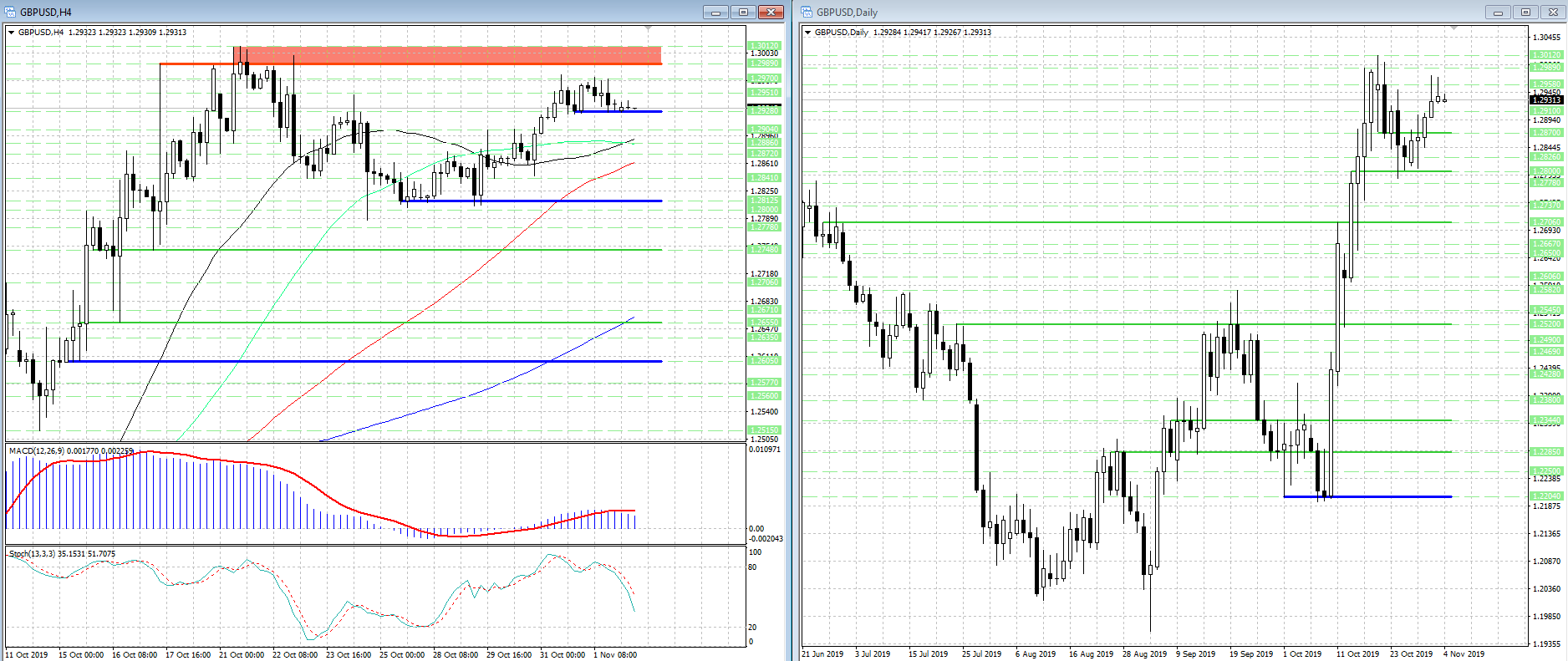 Уровни сопротивления: 1.2951, 1.2970, 1.2989, 1.3012, 1.3050, 1.3100/10