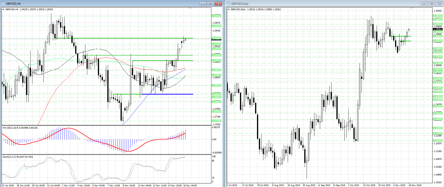 - на торгах в прошлую пятницу пробой сильных уровней сопротивления 1.2885 и 1.2895 привел к усилению бычьих настроений, а наша первая цель (1.2928) была достигнута сегодня рано утром,