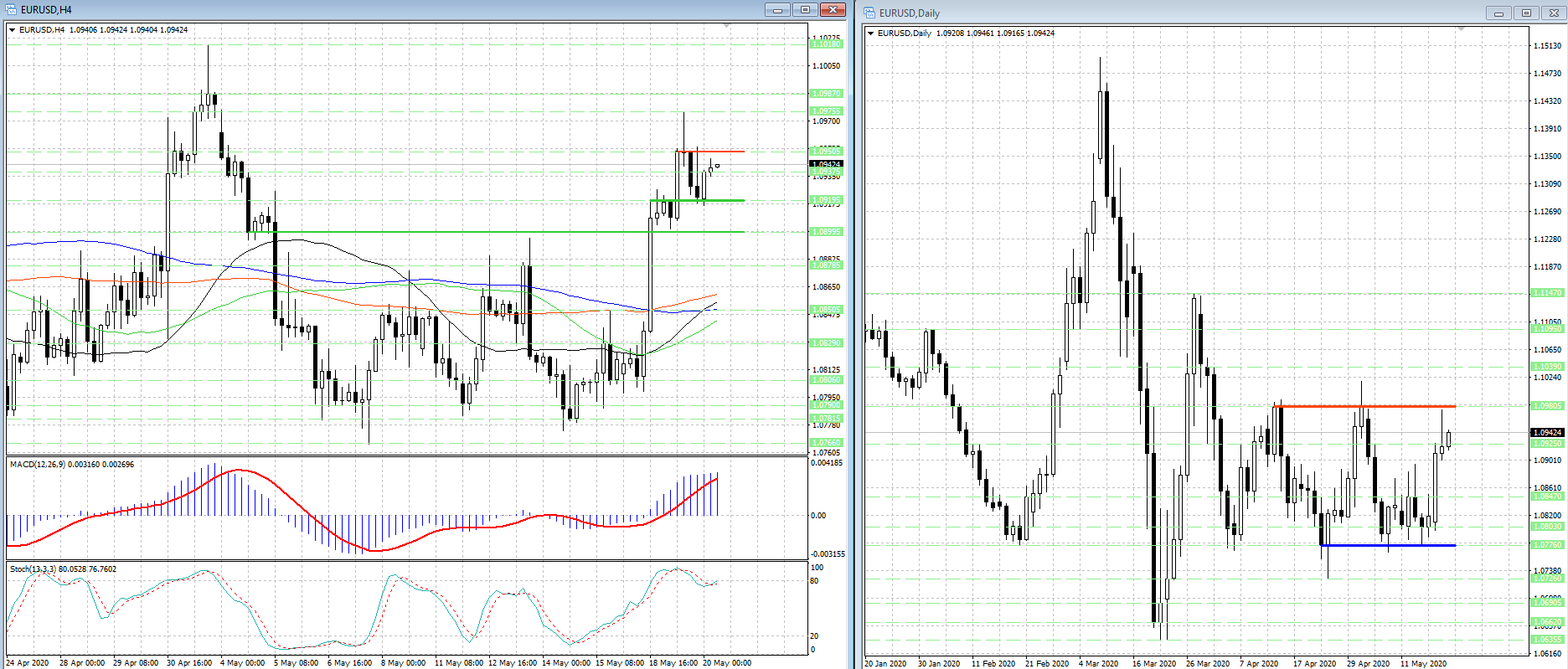 В противном случае, курс валютной пары продолжит двигаться в рамках ценового диапазона 1.09195 - 1.09505.
