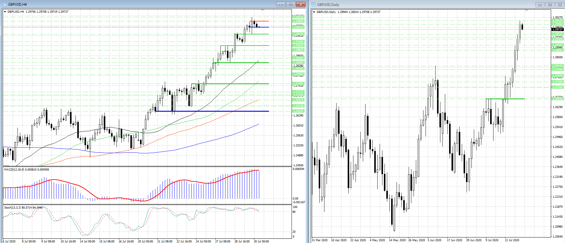 - на уровне 1.2996 образовалось заметное сопротивление для британского фунта (GBP),
