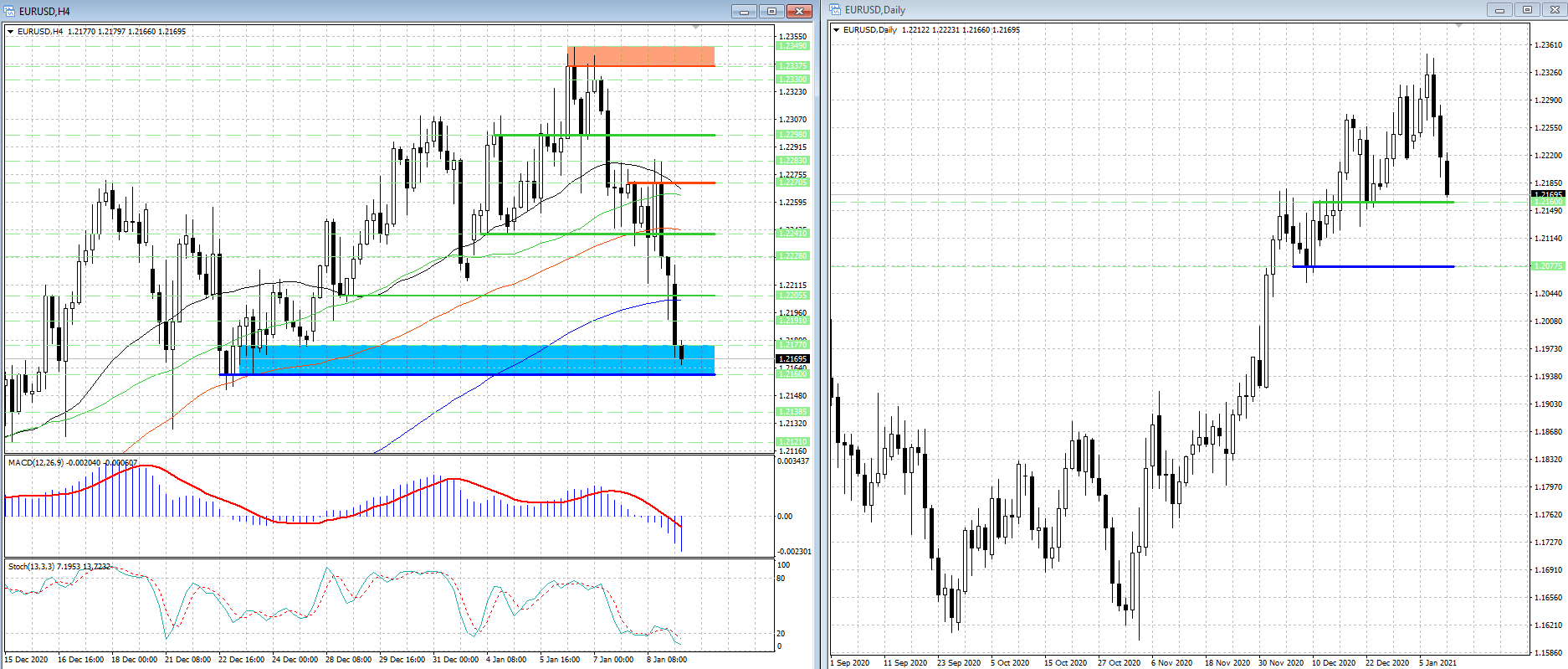 EUR/USD. Сильный уровень поддержки 1.2160 'под прицелом' медведей...