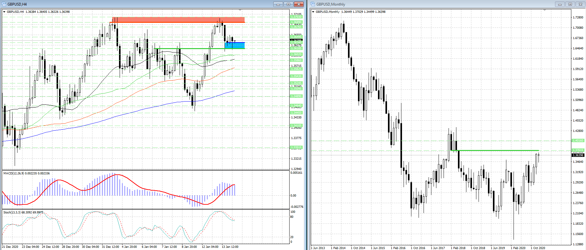 - с одной стороны в области 1.3689 - 1.3703 присутствует сильное сопротивление для британского фунта (GBP),