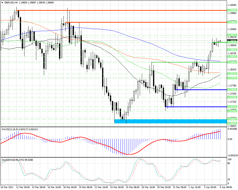 Курс валюты закрепился заметно выше скользящих средних с периодами 144, 89, 34 и 55, которые теперь являются рядом уровней поддержки 1.3848, 1.3817, 1.3810 и 1.3787.