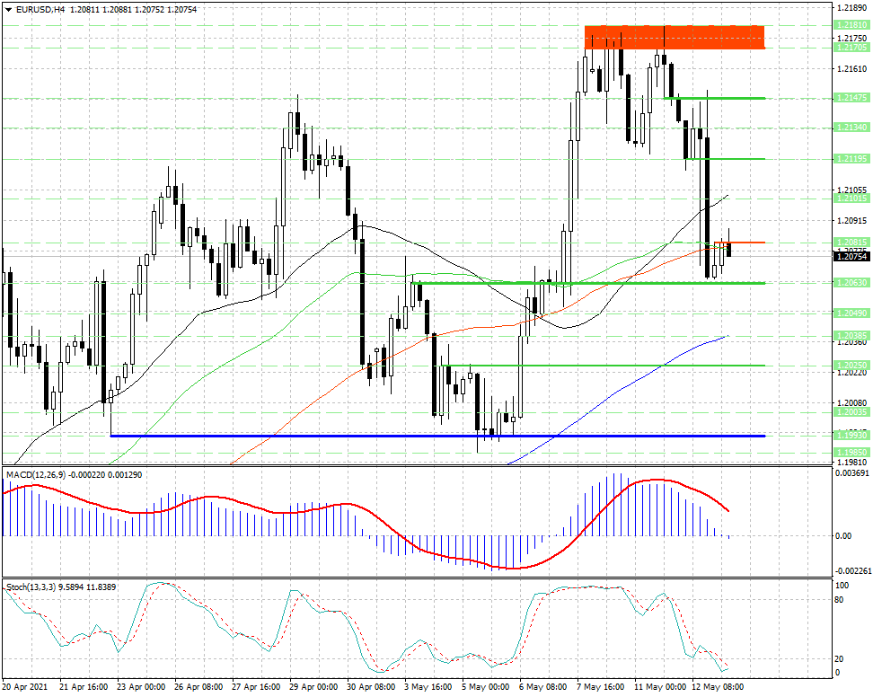 В противном случае, курс валютной пары EUR/USD будет двигаться в рамках ценового диапазона 1.2063 - 1.20815.