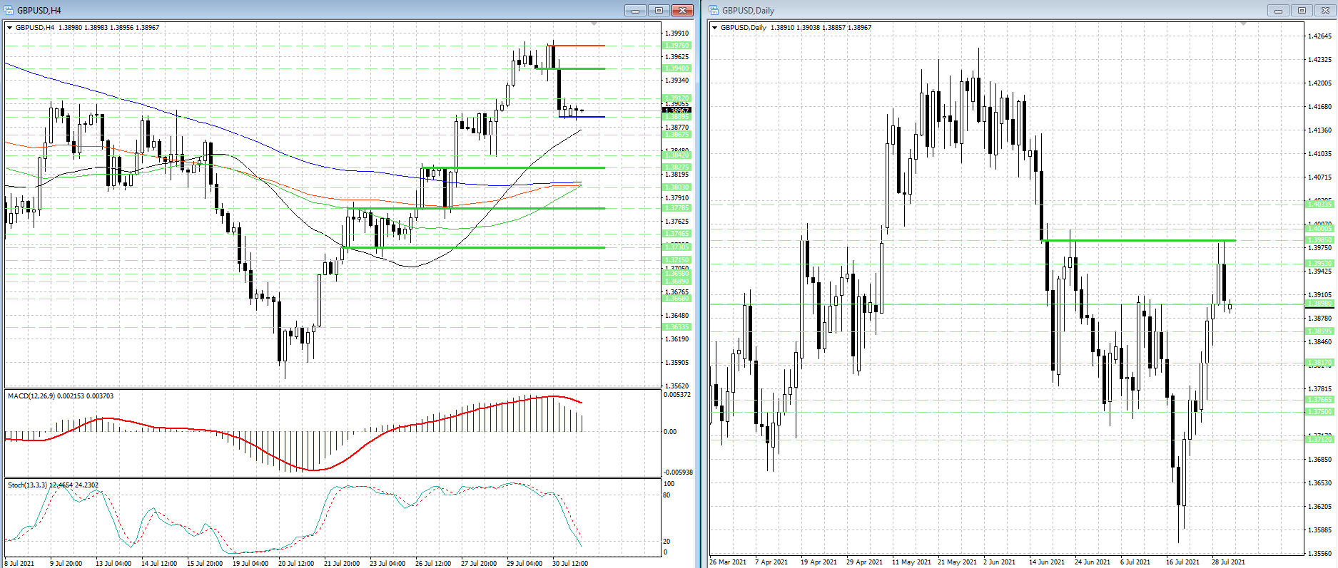 В противном случае, быки могут перехватить инициативу, а их целями станут уровни 1.3948 и 1.3976.