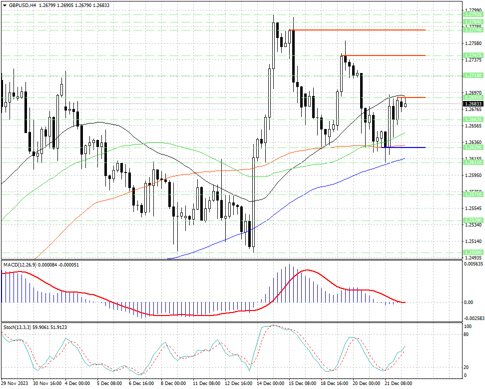 Поскольку, доверять лишь одному четкому сигналу крайне рискованно, то в качестве подтверждения того, что на рынке форекс в валютной паре GBP/USD могут усилиться бычьи настроения, необходимо дождаться пробоя уровня сопротивления 1.2691, который может открыть путь к уровням 1.27425 и 1.2774.