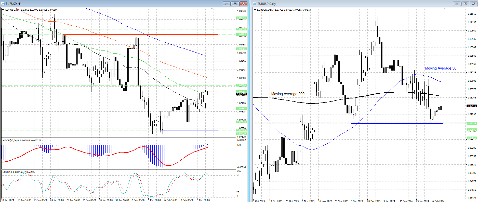 Несмотря на два одинаковых и четких сигнала, в качестве подтверждения того, что на рынке форекс в валютной паре EUR/USD могут усилиться бычьи настроения, необходимо дождаться пробоя уровня сопротивления 1.07955, который может открыть путь к уровням 1.0831 и 1.08705.