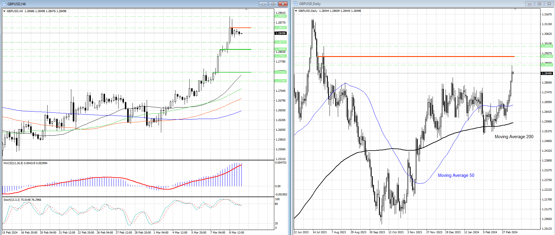 Отмена 'медвежьего сценария' произойдет в случае пробоя уровня сопротивления 1.28635, который может открыть путь к уровням 1.2940 и 1.2995.