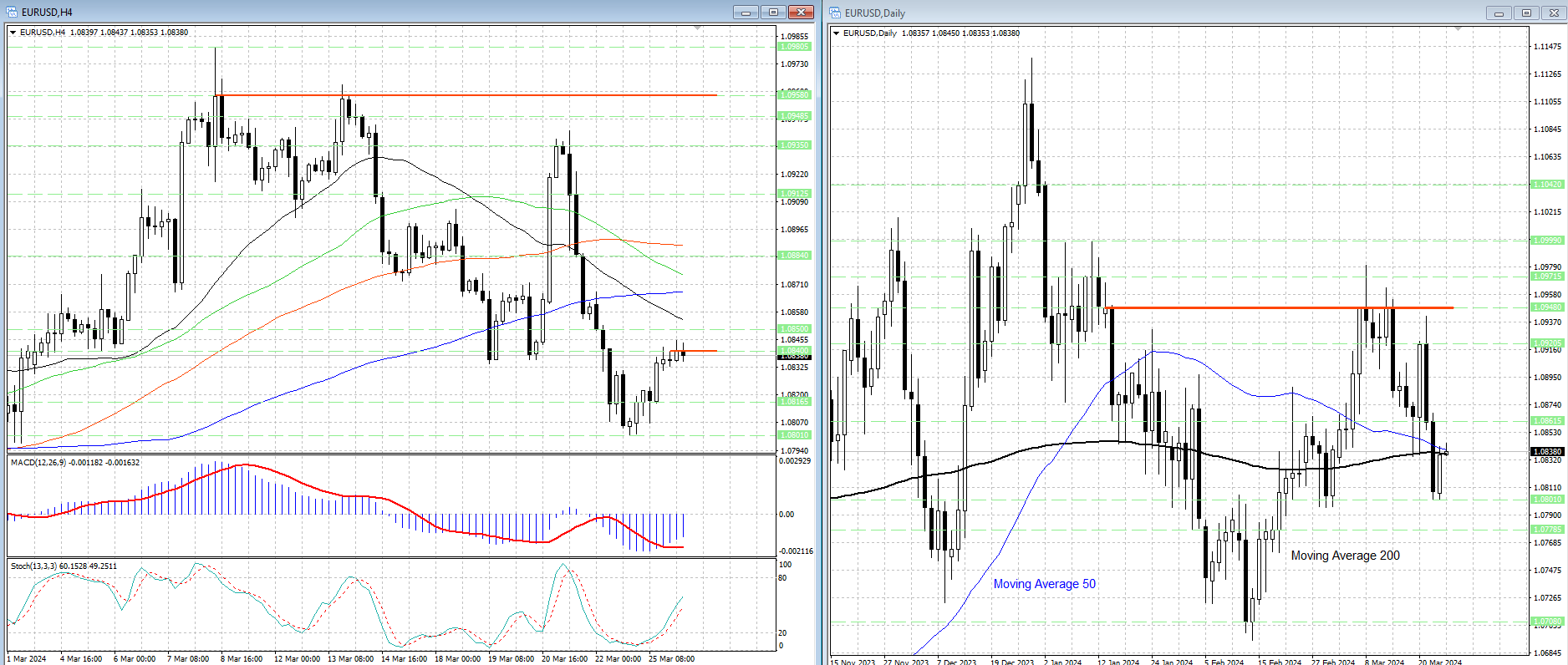 Несмотря на два одинаковых и четких сигнала, в качестве подтверждения того, что на рынке форекс в валютной паре EUR/USD могут усилиться бычьи настроения, необходимо дождаться пробоя уровня сопротивления 1.0840, который может открыть путь к уровням 1.0884 и 1.0935.