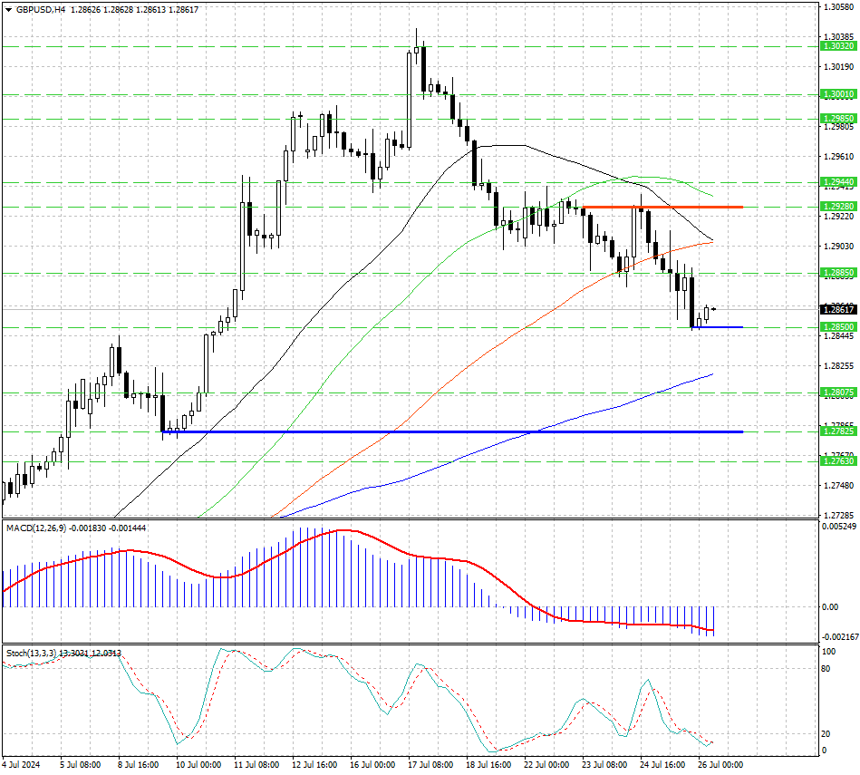 Отмена 'бычьего сценария' произойдет в случае пробоя уровня поддержки 1.2850, который может открыть путь к уровням 1.27825 и 1.2763.