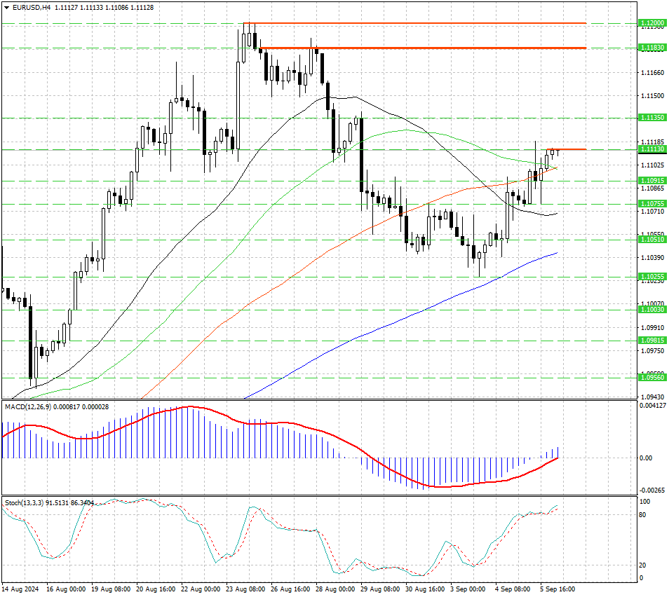 Уровни сопротивления: 1.1113, 1.1135, 1.1183, 1.1200
