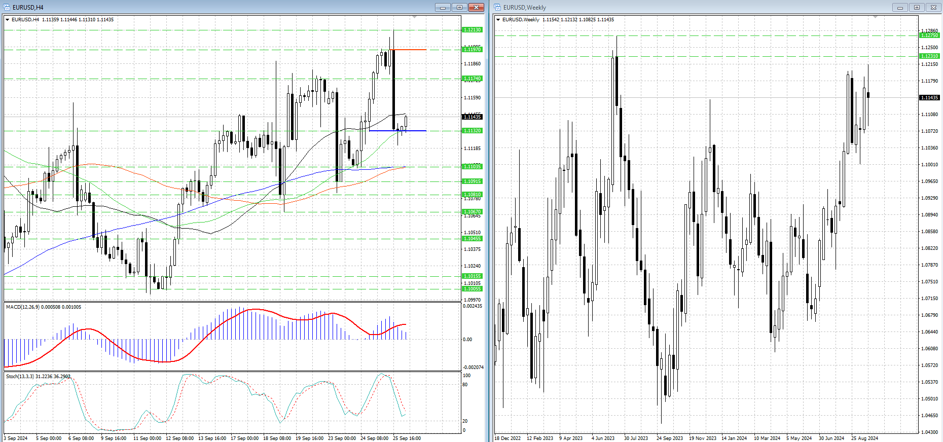 Курс валютной пары зажат между скользящей средней с периодом 34 (уровень сопротивления 1.1146) с одной стороны и средних с периодами 55, 144 и 89 (ряд уровней поддержки 1.1133 и 1.11035/03) с другой.