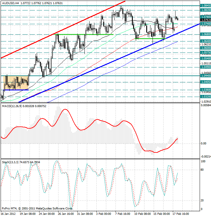 Курс валюты вновь расположен выше скользящих средних с периодами 55, 34, 89 и 144, которые теперь являются рядом уровней поддержки 1.0740, 1.0720 и 1.0640.