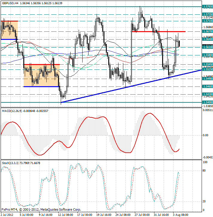 1. Пробой уровней сопротивления 1.5640 и 1.5670 и рост GBP/USD к уровням 1.5735 и 1.5765 (локальный max).