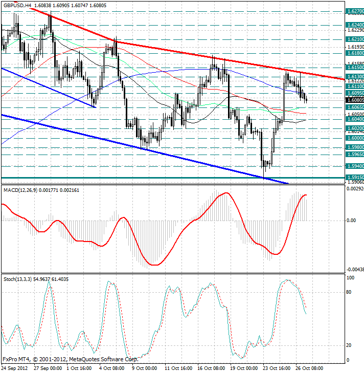 Курс валюты зажат между скользящей средней с периодом 144 (уровень сопротивления 1.6095) с одной стороны и средних с периодами 55, 89 и 34 (ряд уровней поддержки 1.6065, 1.6055 и 1.6040) с другой.