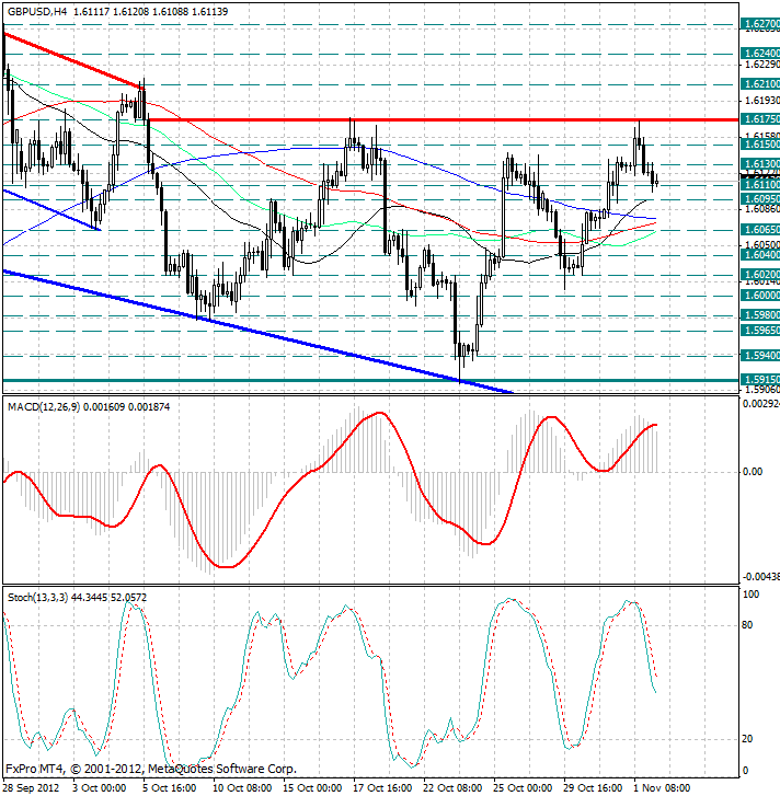 - на торгах в четверг курс валюты вновь встретил сильное сопротивление возле уровня 1.6175,