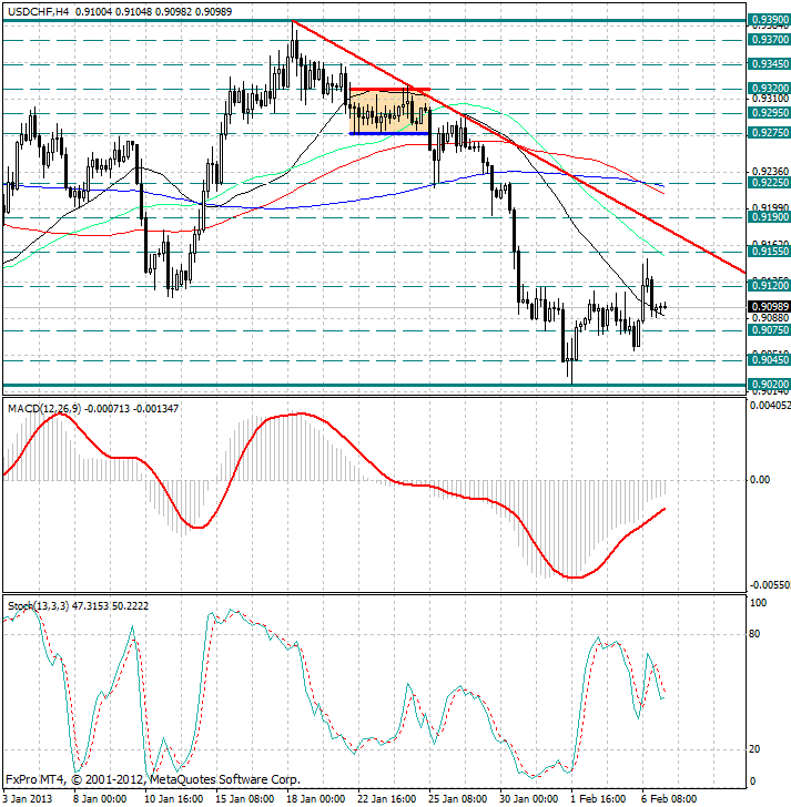 1. Пробой уровня сопротивления 0.9120 и рост USD/CHF к уровням 0.9180 и 0.9225.