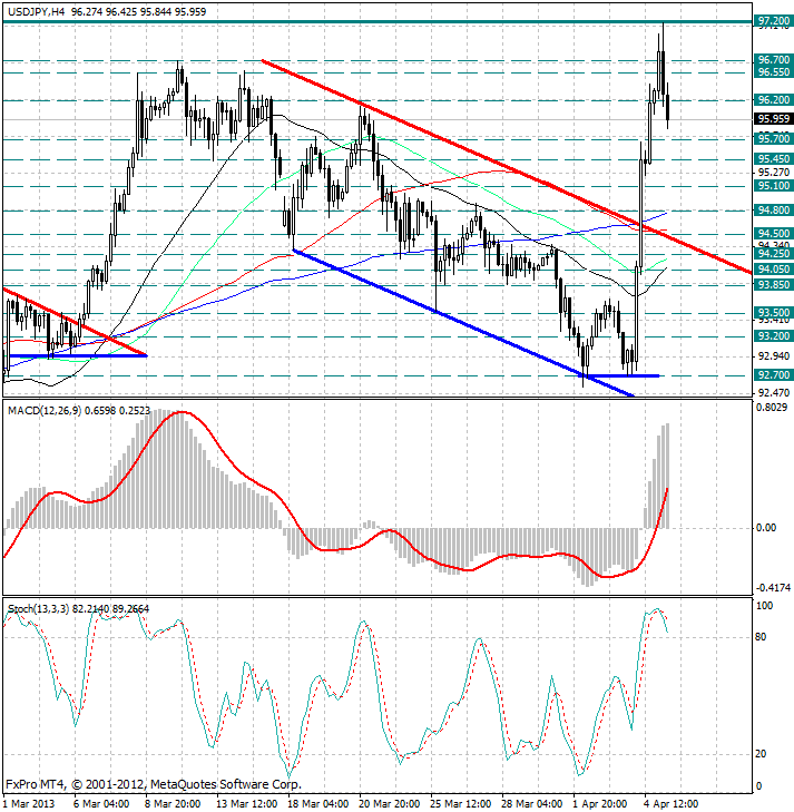 Начнем с того, что наш вчерашний форекс прогноз подтвердился - пробой уровня сопротивления 95.10 привел к очередному усилению бычьих настроений и отработка ранее намеченных целей 95.70 и 96.20 завершилась в начале американской сессии.