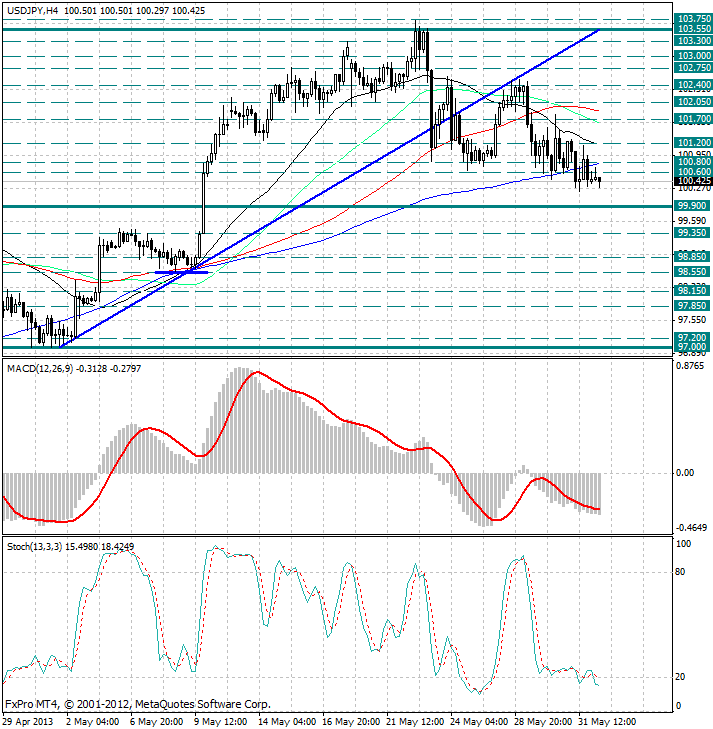 Курс валюты закрепился ниже скользящих средних с периодами 144, 34, 55 и 89, которые теперь являются рядом уровней сопротивления 100.80, 101.20, 101.60 и 101.90.