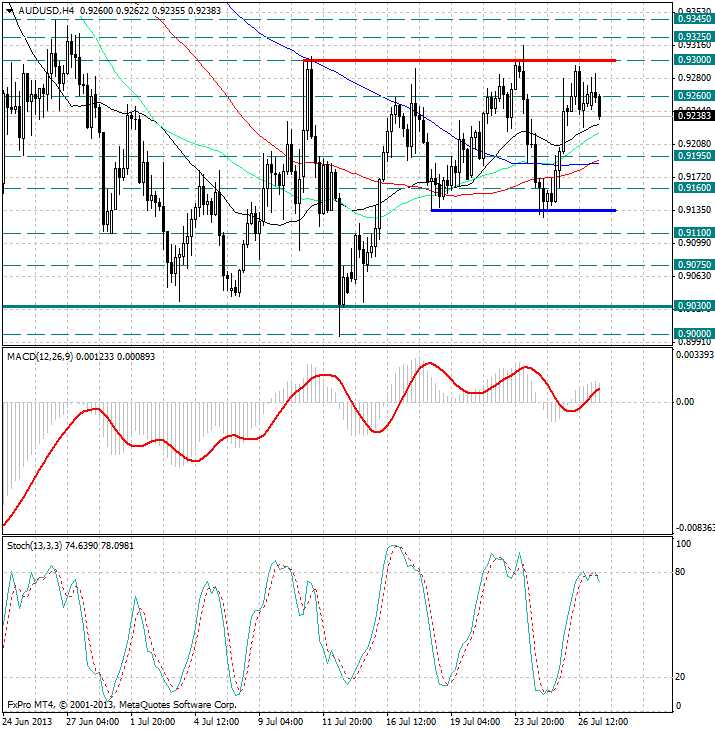 Курс валюты по-прежнему расположен выше скользящих средних с периодами 34, 55, 89 и 144, которые являются рядом уровней поддержки 0.9230/20 и 0.9190/85.