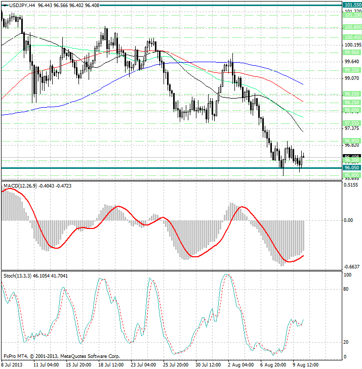 Обратив внимание на 4х часовой график можно заметить, что курс валюты вновь нашел ощутимую поддержку возле уровня 96.05...