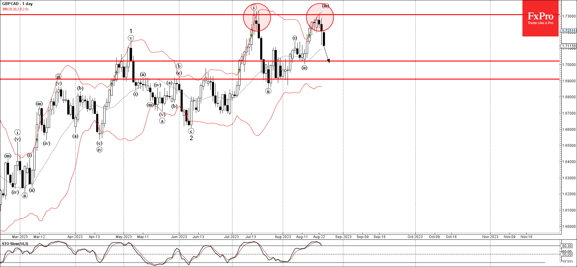 Волновой анализ GBPCAD 24 августа 2023 г.