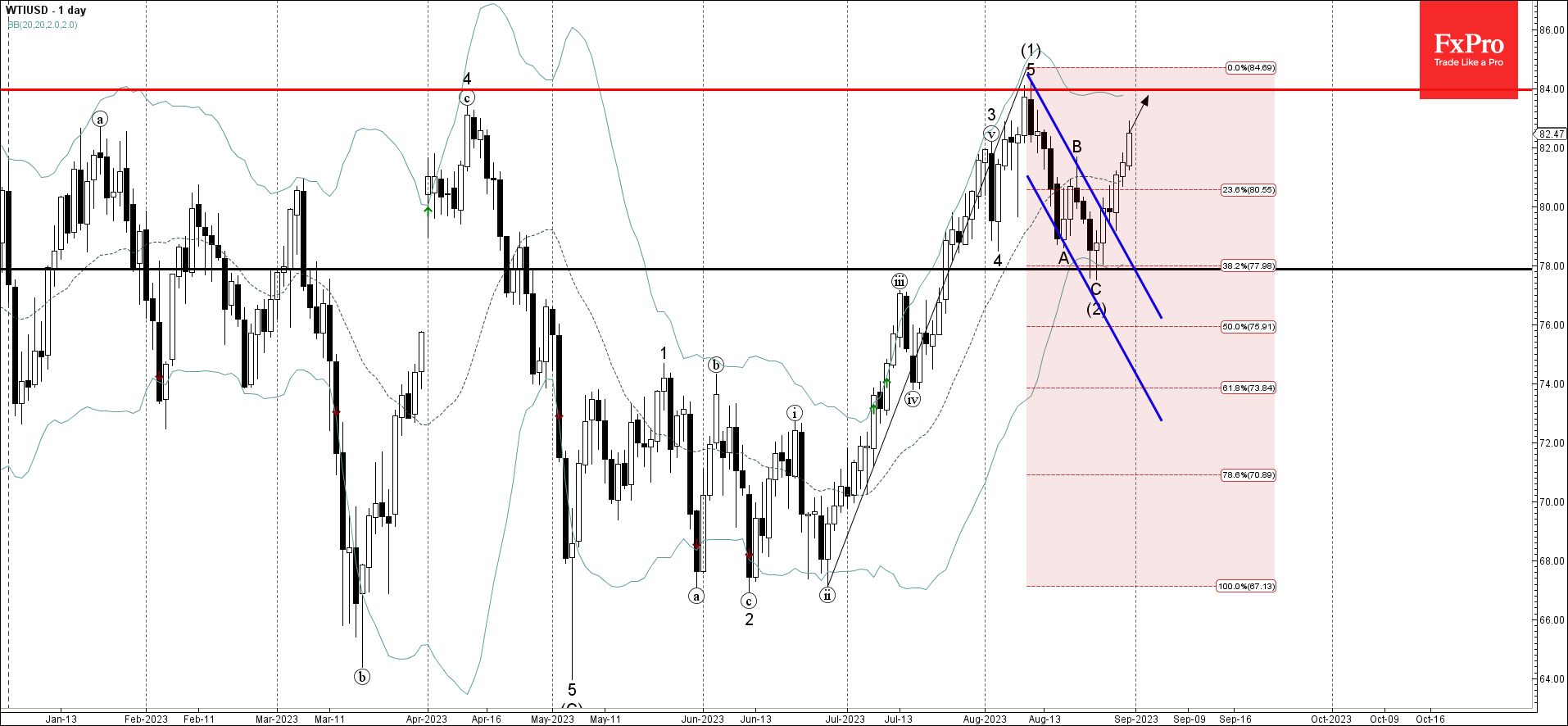 Волновой анализ нефти WTI, 31 августа 2023 г.