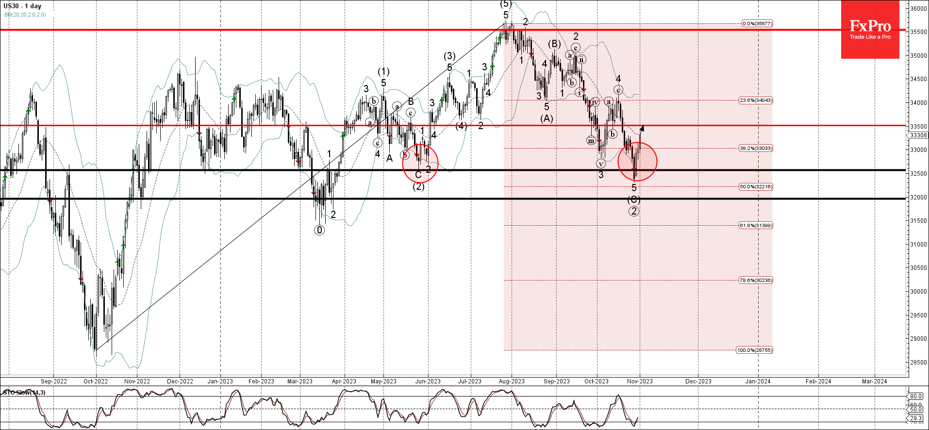 Волновой анализ Доу-Джонса 1 ноября 2023 г.