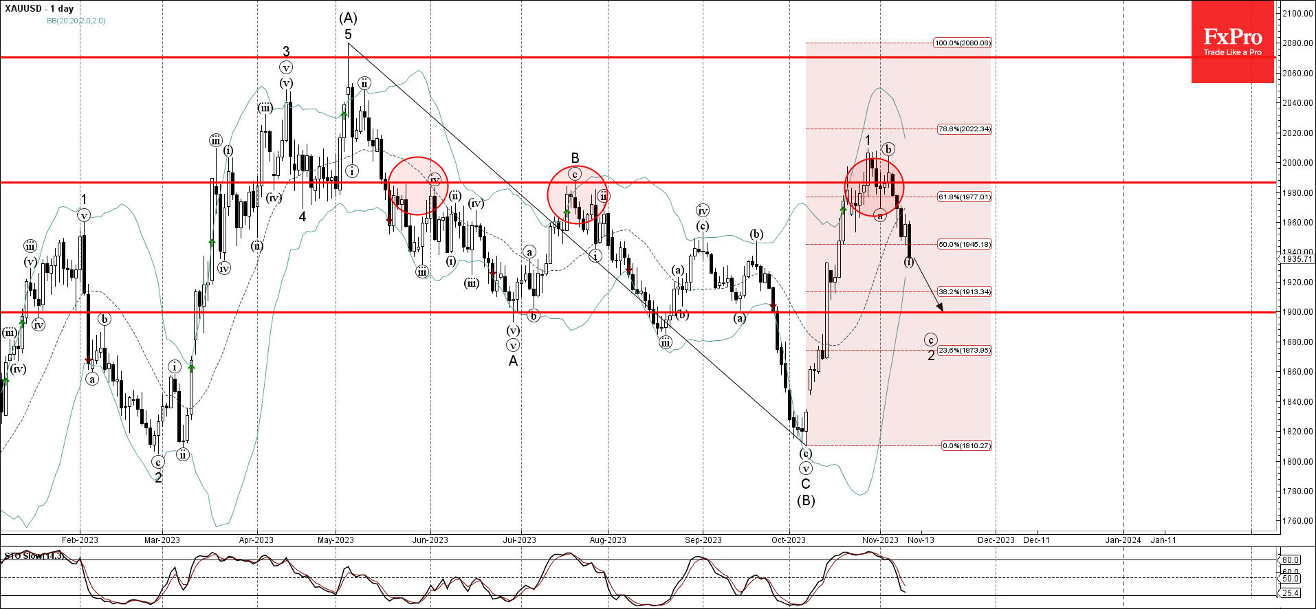 Разворот вниз от уровня сопротивления 1985,00 положил начало предыдущей краткосрочной ABC коррекции 2.