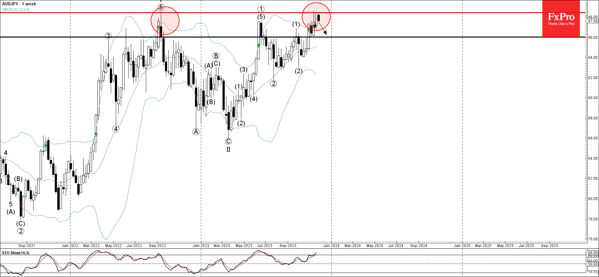 - AUDJPY развернулась от уровня сопротивления 98,40.