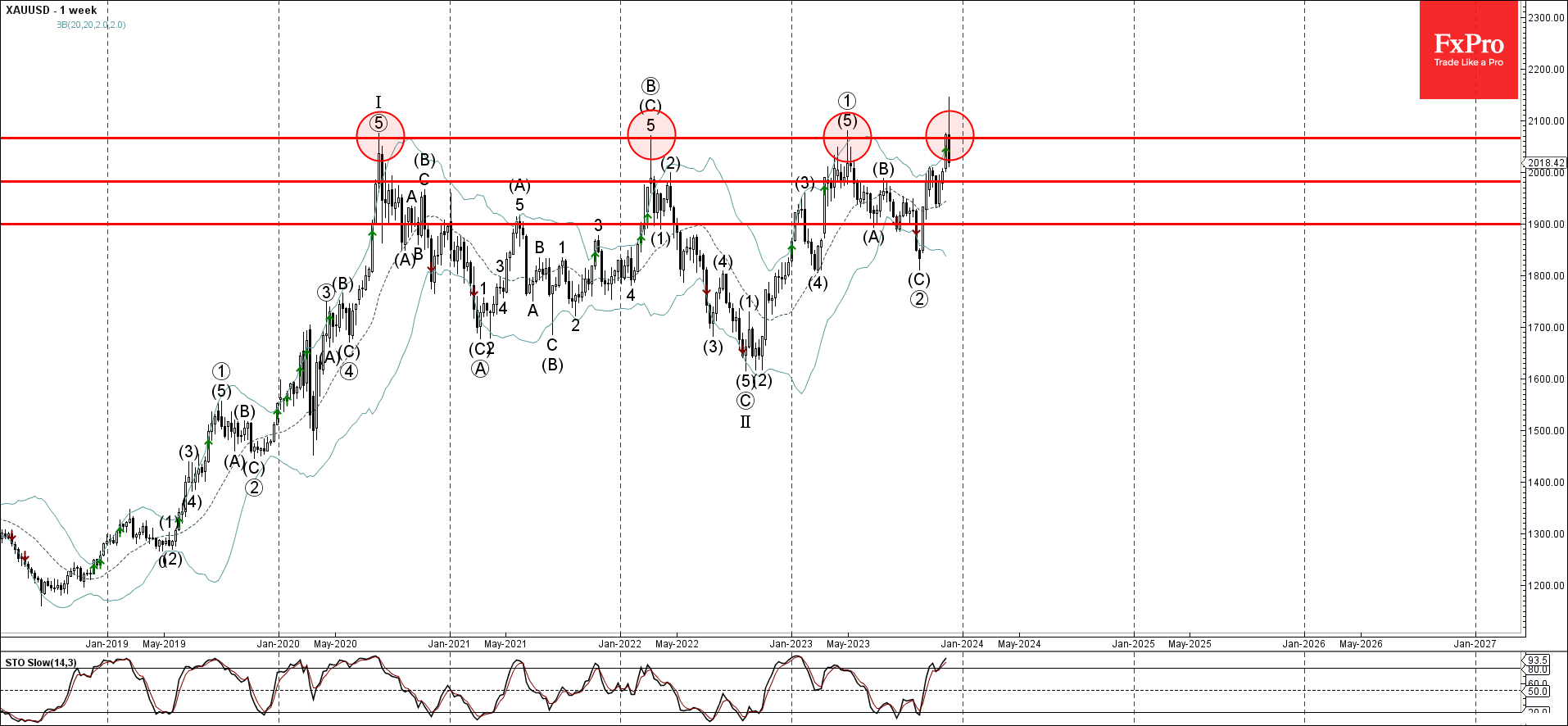 Уровень сопротивления 2065,00 был усилен верхней дневной и недельной полосами Боллинджера.