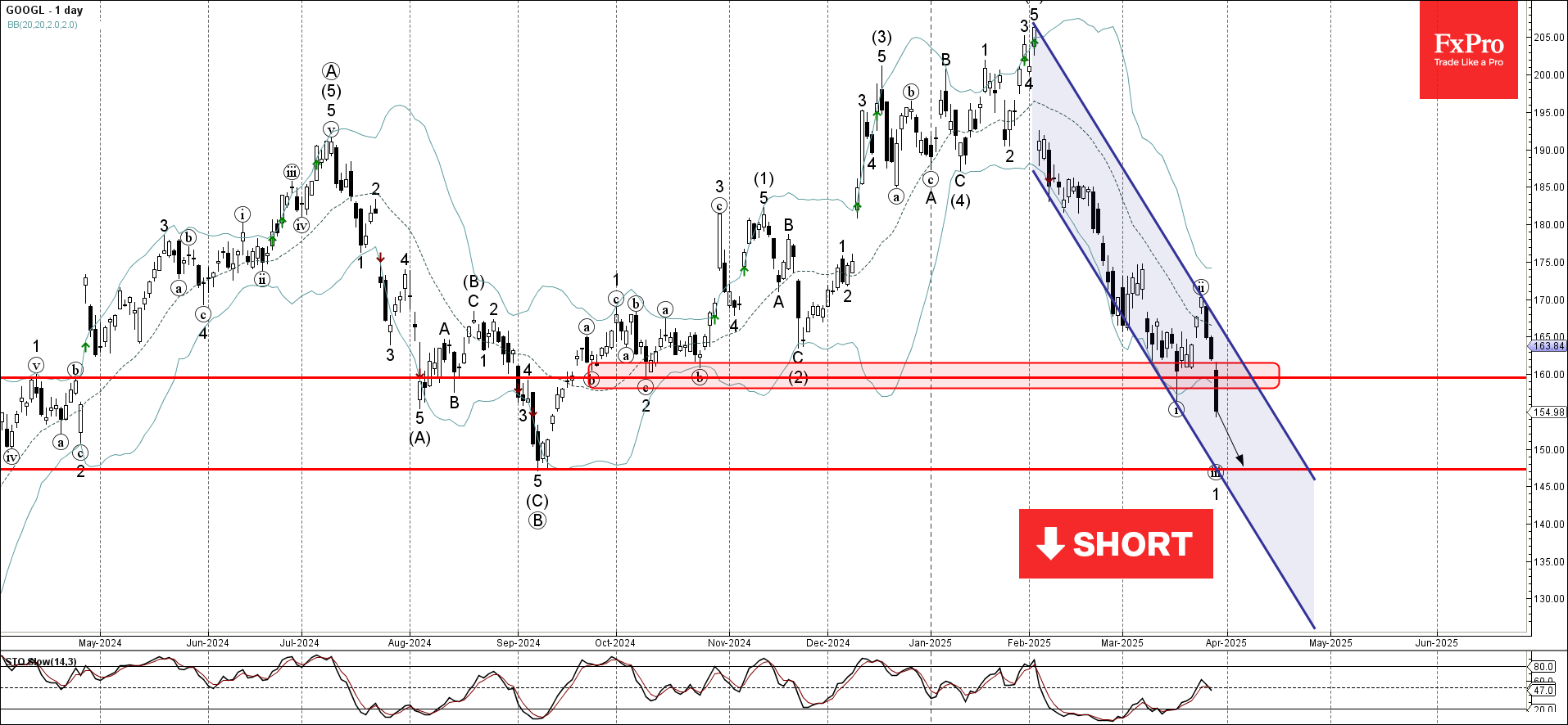 Можно ожидать, что Google упадет до следующего уровня поддержки 147,30 (бывшее многомесячное дно от прошлого сентября).