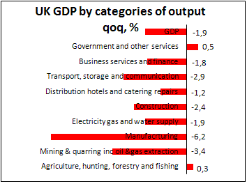 ВВП Великобритании упал на 1,9% при прогнозах на -1,6%, проблемы с бюджетом давят на фунт
