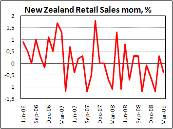 Розничные продажи в Новой Зеландии сократились в марте на 0,4%, вопреки ожиданиям роста на полпроцента. Как видно из отчета Statistics New Zealand, падение продаж вызвано снижением спроса на автомобильное топливо (-7,3% за месяц). Без учета этого фактора, объем торговли увеличился на 0,5% при ожиданиях роста всего на 0,1%. Несмотря на довольно устойчивые показатели на продукты ежедневного спроса, падение общего индекса говорит о все еще слабом состоянии кредитного рынка, обещая дальнейшие трудности перед экономикой, ухудшая перспективы новозеландского доллара. Добавляет негатива по валюте также сокращение рисковых позиций, начатое после публикации слабых показателей розничных продаж в США, и продолженное слабыми данными по ВВП в Германии и Франции, а также настроений, что наблюдавшийся в последние месяцы рост цен на сырье не обеспечен восстановлением спроса. Как и ранее, мы считаем, что ближайшей целью для пары NZDUSD является 0,5820, от успешности тестирования которой зависят дальнейшая динамика.