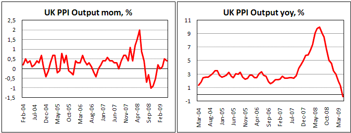 Цены производителей в Великобритании в мае упали к прошлому году на -0,3%, что стало первым отрицательным значением этого индикатора с 2002 года. По итогам месяца цены выросли на 0,4%, после увеличения на 0,7% месяцем ранее. Стержневой показатель цен производителей держится в положительной зоне, хотя и сократил более чем вдвое прирост к предшествующему году (до 1,2% с 2,5%). Рост цен на энергоносители отразился на показателях цен для компаний. Наибольший вклад в увеличение общего индекса по итогам месяца внесли продукты нефтепереработки, прибавившие 1,6%. Менее значительно выросли и другие группы. Только цены на транспортные услуги снизились в мае, потеряв 0,3%. Общие показатели цен оказались в рамках среднего рыночного прогноза, что не оказало заметного влияния на фунт. На него сейчас в большей степени влияют политические события в стране. Премьер министр Гордон Браун борется за свою политическую жизнь, в то время как все большее число его соратников уходят в отставку. За двое суток стерлинг потерял к доллару пять фигур или почти 3,5%. Ближайшей поддержкой может выступить отметка в 1,60, в случае ее прохождения, пара может направиться к 1,58.