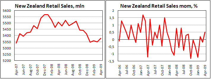 Рост розничных продаж в Новой Зеландии, кажется, уже не способен вызвать интерес к покупкам пары nzd/usd. Согласно отчету Statistics New Zealand, объем розничной торговли выросла в апреле на 0,5% после снижения на 0,2% месяцем ранее. Ожидалось, что продажи увеличатся на 0,2%. Хуже ожиданий оказались продажи за вычетом продаж автотранспорта. Этот показатель снизился на 0,1% против ожиданий роста на 0,4%. Спрос на автомобили отличается высокой волатильностью от месяца к месяцу, а снижение продаж товаров для дома является отражением стратегии экономного расходования средств, пока потребители не уверены в завтрашнем дне. Хотя общие цифры носят довольно оптимистичный характер, более глубокий взгляд дает картину относительно хрупкого спроса на потребительском рынке. То же можно сказать о дорогостоящих товарах спрос на них растет, так как банки предоставляют кредиты под более низкие проценты благодаря снижению официальной ставки на 575 пунктов за последний год, а также за счет резкого обвала этого рынка в предшествующие месяцы. К подешевевшим товарам вернулись те, кто так или иначе планировал их приобретение. Ралли новозеландского доллара, равно как и сырьевых площадок может застопориться в ближайшее время с сопротивлением в районе 0,66.